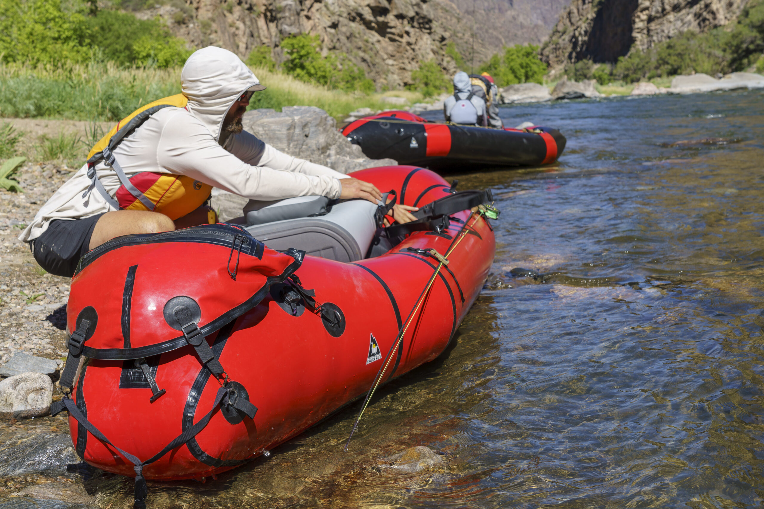 カーゴフライ内に荷物を入れると、重量がチューブ内の低い位置に分散されます。パックラフトは空気で浮くボートのため、重心が高いと横揺れに弱くなります。カーゴフライへの積載は重心を下げ、艇全体の安定性を高めます。