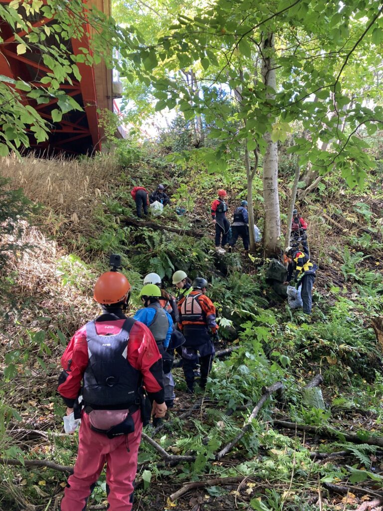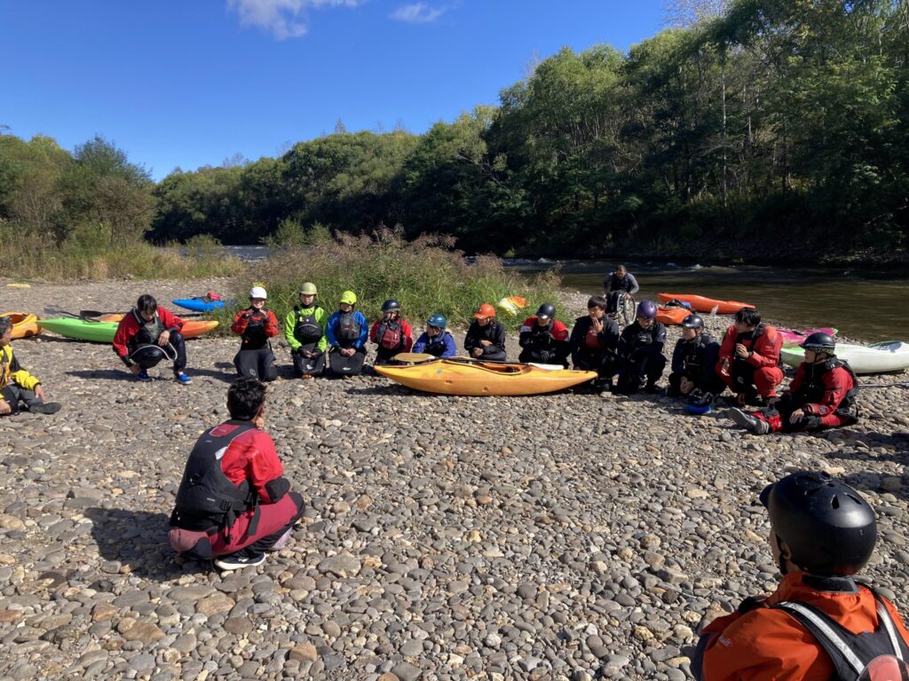 舞台は尻別川。橋下のゴミ拾いから始まるフレンドシップダウンリバー、パックラフトのエキシビジョンレース、レスキューシチュエーションの共有と考察。