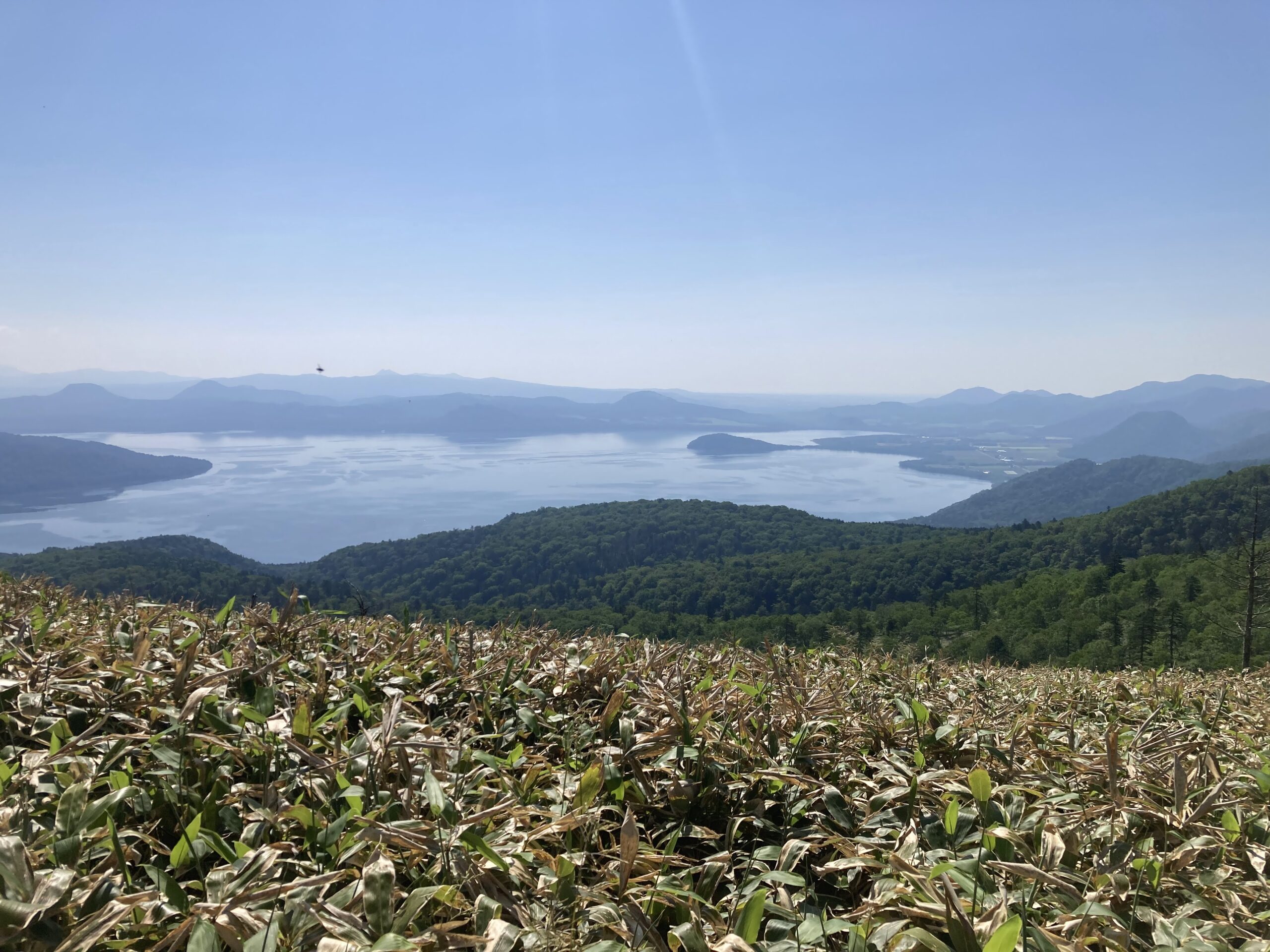 パックラフトは持っていませんでしたが、釧路川の源流である屈斜路湖を、KCT(屈斜路カルデラトレイル)のトレイル上から見下ろした時の景色です。