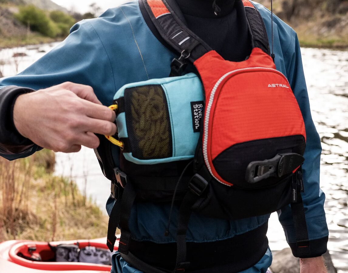 腰にバッグを巻いた状態でスプレースカートを装着すると、動きが制限され、脱出時の邪魔になる可能性があります。River Station Gear の PFD Style 45′ Throw Bag は、この問題をPFDへの直付けで解決する新しいアプローチのスローバッグです。